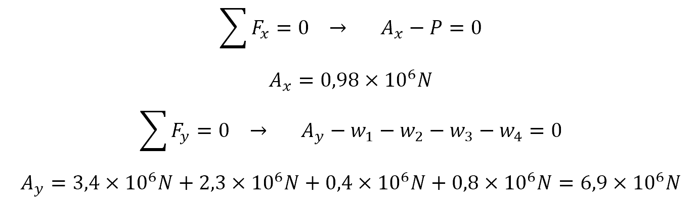 De las condiciones de equilibrio se determinan las reacciones sobre el punto A: