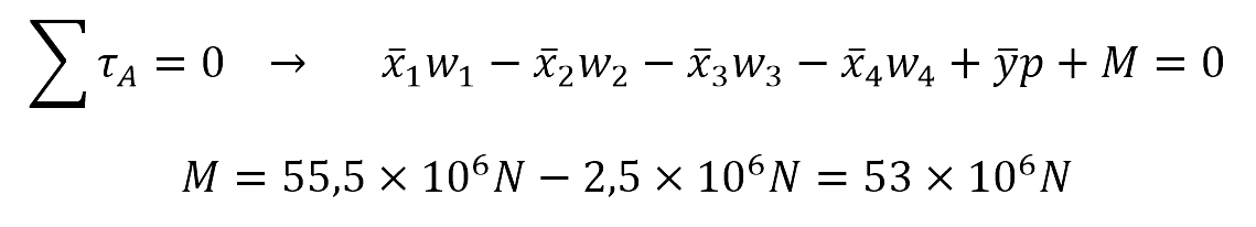 Las reacciones del suelo se pueden representar por un sistema equivalente fuerza-par en el punto A. Por medio de los momentos de torsión se puede determinar el momento para la fuerza resultante M del sistema fuerza-par en A.