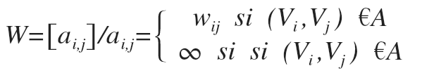 Sea G=(V,A) un grafo ponderado finito tal que V={v1, … , vn}. Se llamará matriz de peso del grafo G a la siguiente matriz de orden n x n: