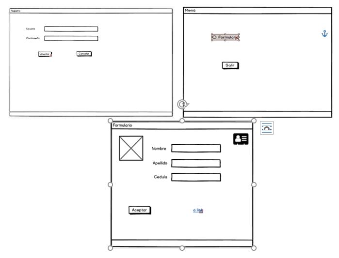 En la siguiente imagen se muestra cómo quedaron las ventanas creadas desde Balsamiq.