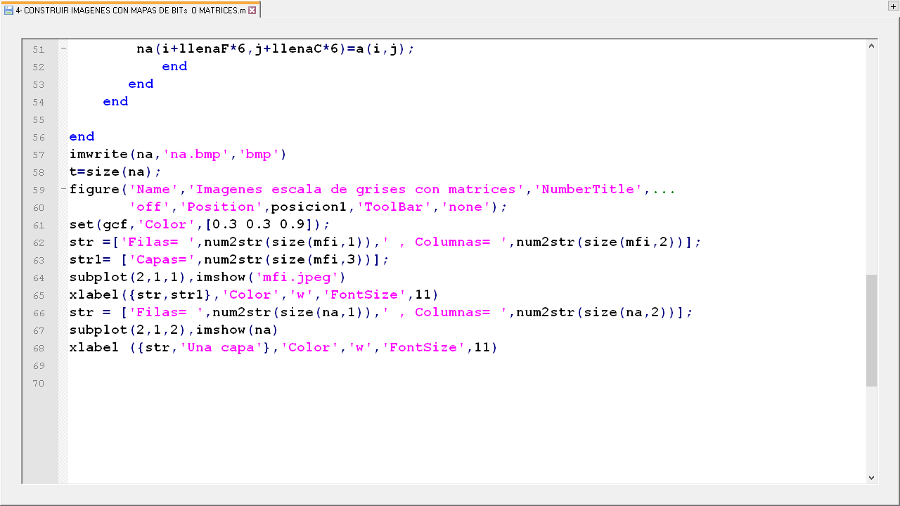 Código para construir imagen en escala de grises y blanco-negro con matrices: tenga en cuenta los siguientes códigos para realizar las actividades: