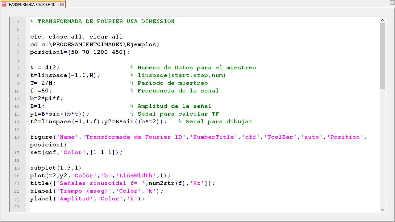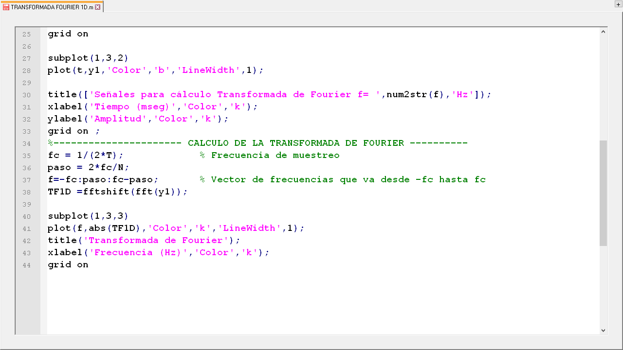 El código utiliza la función que calcula la transformada de Fourier en una dimensión de una señal.